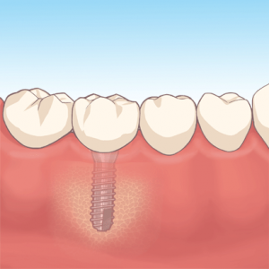 インプラントの手術は、1センチメートルほどのネジをあごの骨の中に植え込む手術です。