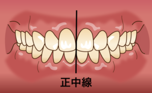 正中線とは、上下の前歯の線を繋いだ線のことです。この線が上下とも揃っていることが正しい噛み合わせの基準になります。