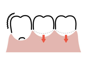 たとえば、歯ぎしりや食いしばりで、歯肉退縮が起きている場合、進行するとさらに歯ぐきが下がってしまう可能性があります。