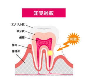 冷たいものや熱いもの、甘いものや酸味の強いものなどは露出した象牙質に触れると、歯の神経を刺激して知覚過敏を引き起こしてしまいます。