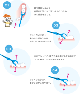 デンタルフロスの使い方はこちらを参考にしてみたください。