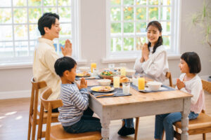 正しい姿勢での食事は、お口の健康や消化をサポートするだけでなく、食事の楽しみにもつながります。