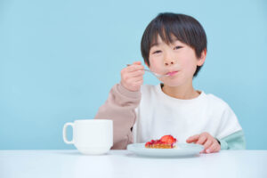 子供は大人と比べて消化吸収に時間がかかるため、早食いは注意が必要です。