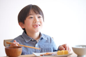 食事の際は噛むことの大切さを伝えるとともに、お箸やお茶碗の正しい持ち方などの食事マナーを学ぶ機会を与えることも大切です。