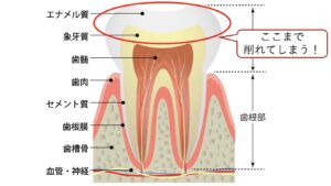 - ・熱いものや冷たいものがしみる「知覚過敏」が起こる