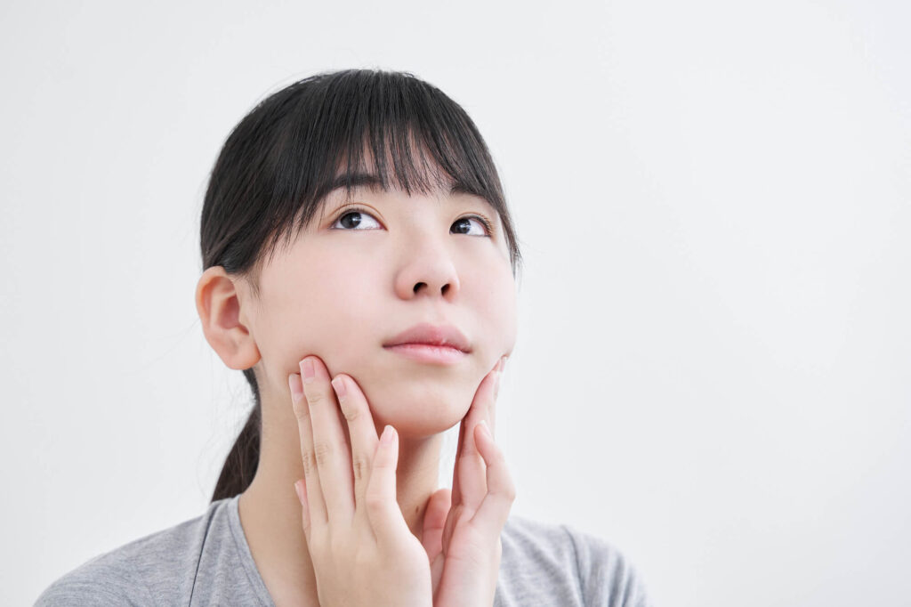 顎の成長が不十分だと、顔のバランスが崩れることがあります。特に、顎が小さいと下顎が後退して見え、顔全体のバランスが悪くなることも。