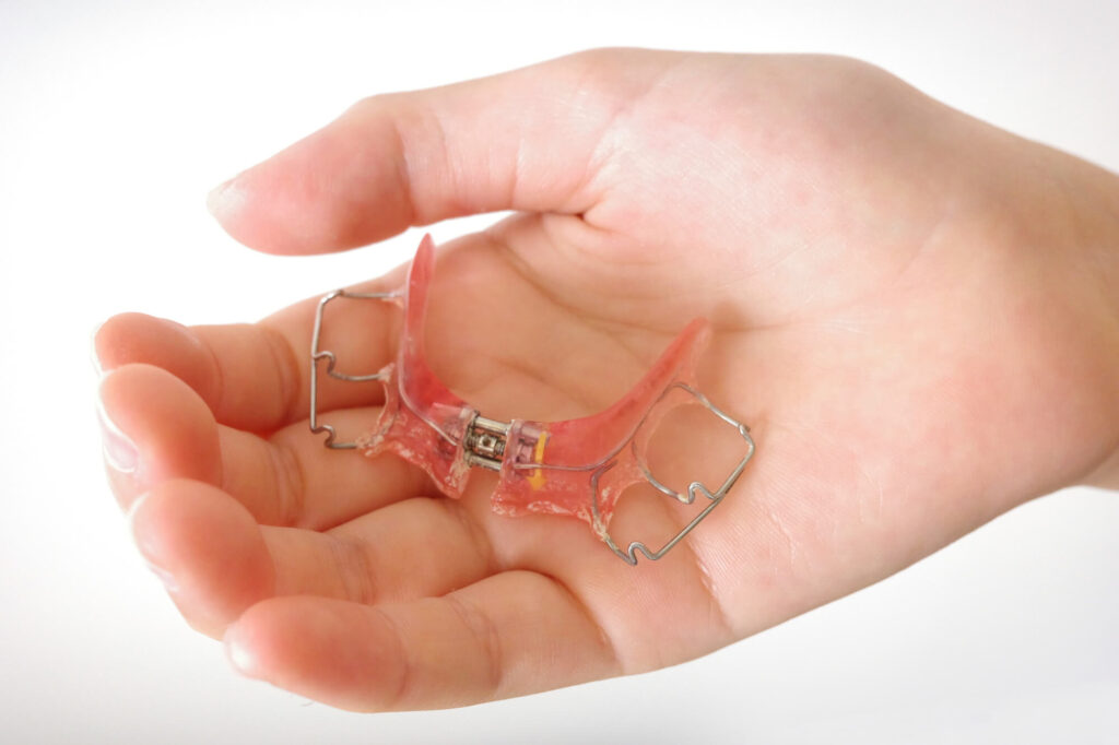また、「急速拡大装置」と呼ばれる装置を用いることもあります。これは、上顎の骨を土台ごと広げる器具です。