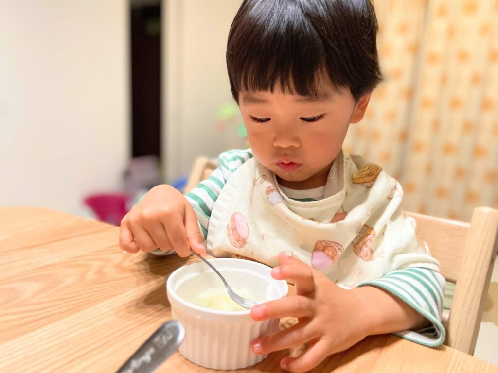 食べやすい大きさに切ってあげたり、フォークの代わりにスプーンを使ったりするのも良いでしょう。