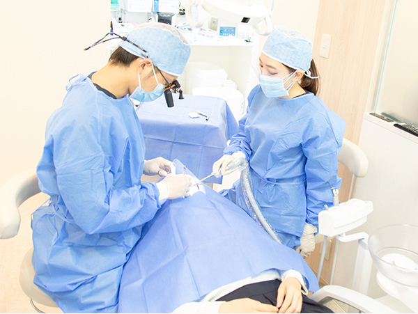 手術後その日のうちに仮歯を装着するため、歯がないという違和感なく日常生活を送っていただけます。あくまで仮歯であることや治療中となるため、食べるものには、注意が必要です。